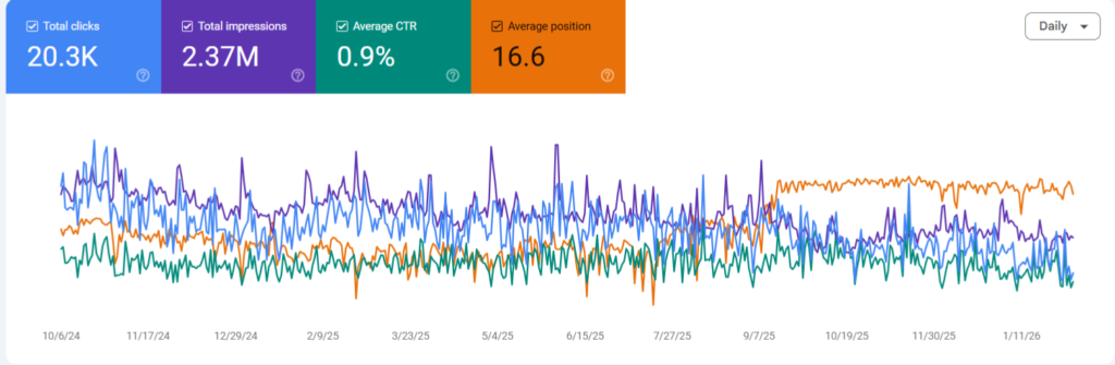 We used industry-standard tools such as Google Search Console, Google Analytics, Ahrefs, SEMrush, and Google Business Profile Insights to monitor rankings, traffic, and leads.
